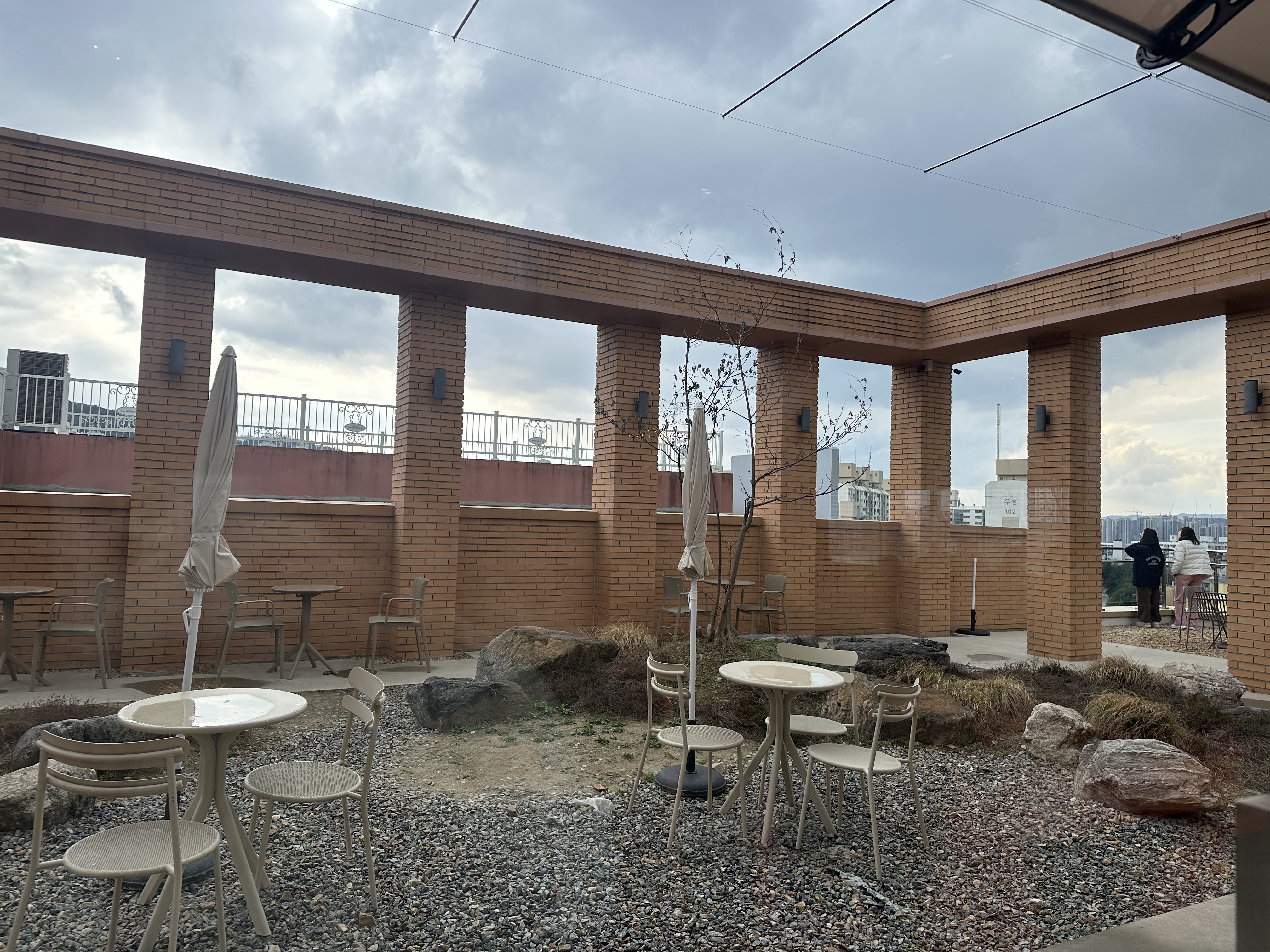 오늘은 아쉽게도 조금 흐린 날씨라 외부 테라스가 사진에 기대만큼 담기지 못했네요.. 실제로 보면 꽤나 큰 규모로 외부 테라스가 마련되어있고 우측에 더 많은 좌석들이 비치되어 있습니다. 날씨가 풀린다면 실내보다 외부에서 커피 한잔 하는 것도 좋을 것 같았어요.