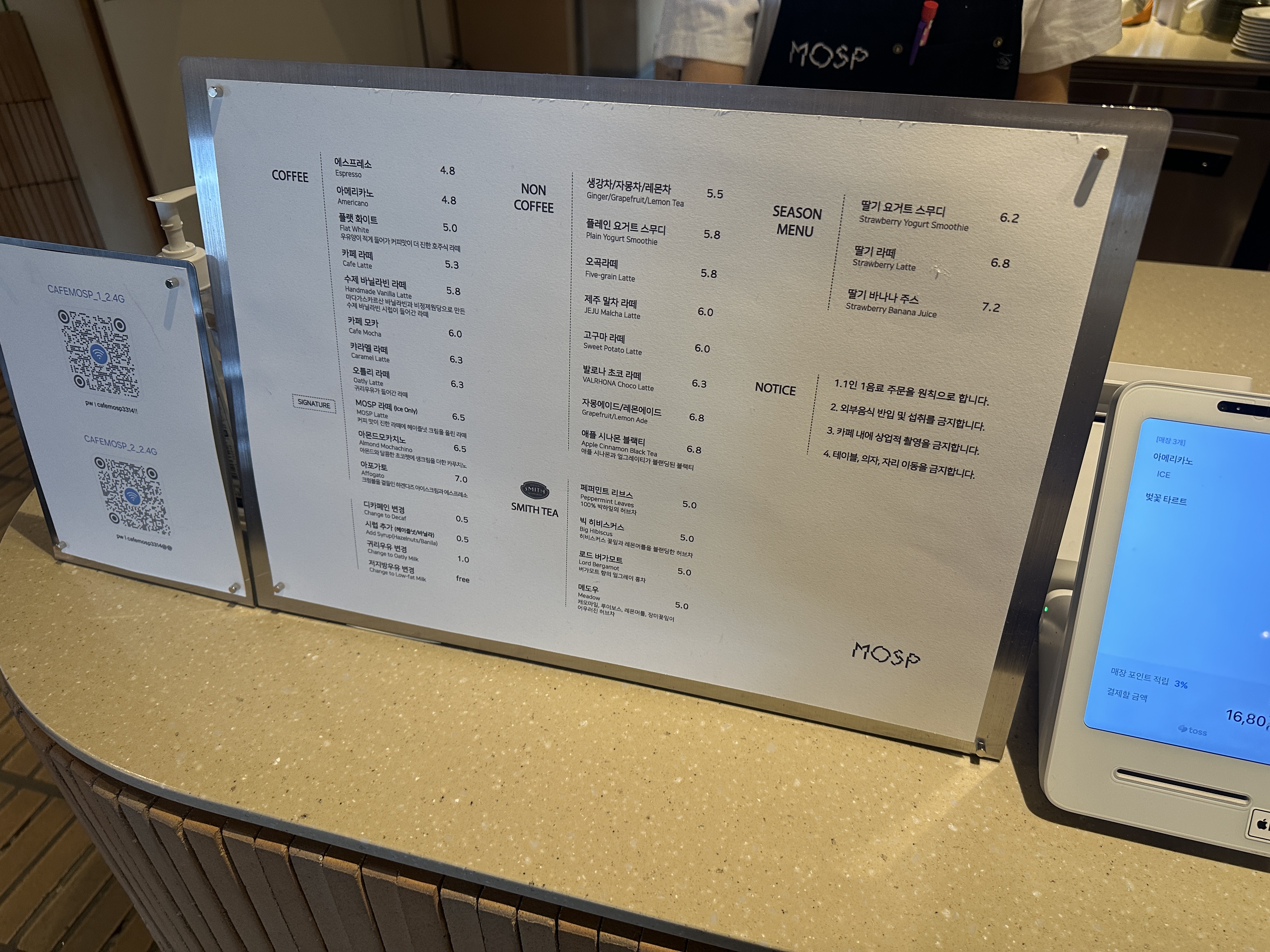 실내에 메달려 있는 샹들리에가 카페의 분위기를 한층 더 돋보이게 해주는 것 같아요.✨ 고급스러우면서도 깔끔한 인테리어와 잘 어우러져 공간 전체가 더욱 세련된 느낌을 줍니다. 특히, 따뜻한 조명이 은은하게 퍼지면서 아늑한 분위기를 연출해주는 점이 인상적이었어요. 이런 디테일 덕분에 모습(MOSP)에서의 시간이 더욱 특별하게 느껴졌던 것 같습니다.😊